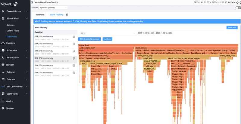 SkyWalking引入了eBPF技术作为性能诊断的一部分。通过Rover代理,它可以监控CPU和网络性能,以帮助您更好地了解系统的行为。eBPF是一个强大的性能分析工具,已经在Linux内核中得到广泛的采用。通过SkyWalking的eBPF支持,您可以深入分析应用程序和系统的性能特征,找出潜在的性能问题。