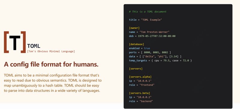 TOML是一种旨在提供明显、简洁语义的配置文件语言。由GitHub创始人Tom Preston-Werner和Pradyun Gedam等人创建,它的目标是让配置文件易于读写、容易理解。TOML的设计原则如下: