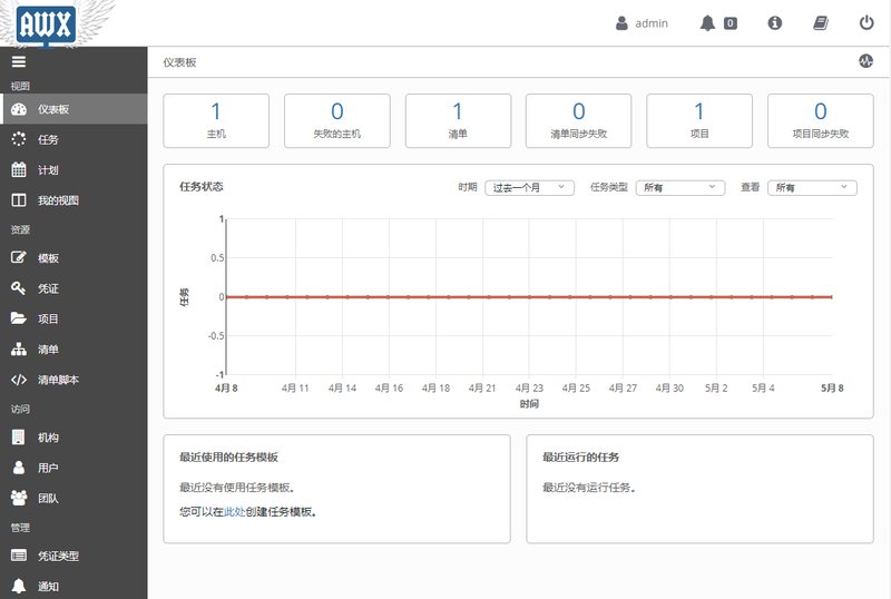 输入用户名和密码登录后,就能看到awx的界面了。