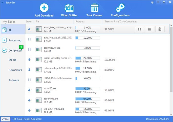 EagleGet是一款使用多线程技术的下载加速器,它可以将您要下载的文件分割成多个部分,然后同时下载,从而将下载速度提高6倍以上!