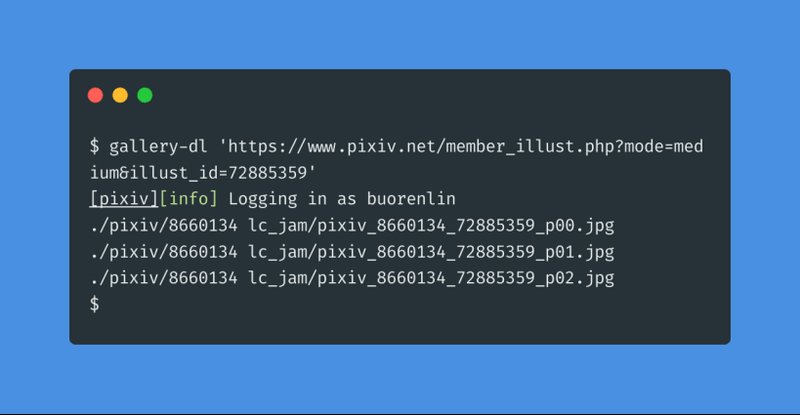 安装完成后,你可以在命令行中输入gallery-dl URL来下载指定URL的图像,其中URL可以是一个单独的图像,一个画廊,一个用户,一个搜索结果,或者一个其他类型的页面。
