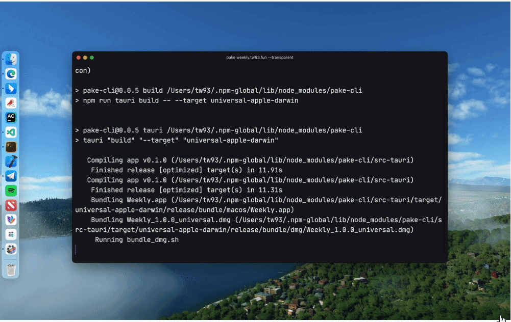 Pake的底层使用的是Tauri框架,它是一个高性能、安全、轻量级的桌面应用开发框架,相比传统的Electron套壳打包,要小将近20倍,5M上下。