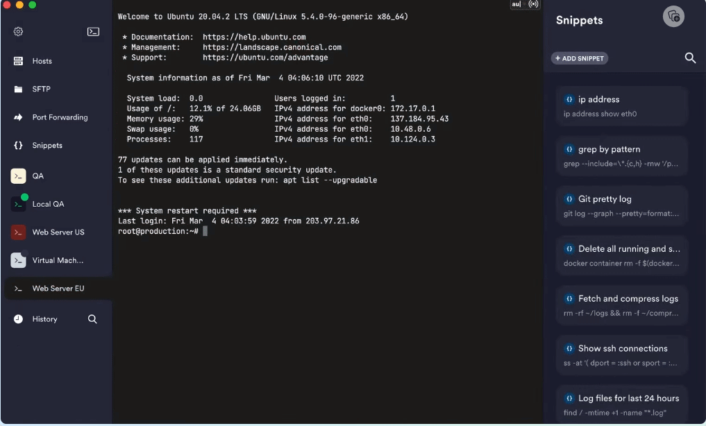 Termius是一个用于移动和桌面的SSH平台,它可以让你轻松地连接和管理远程设备。