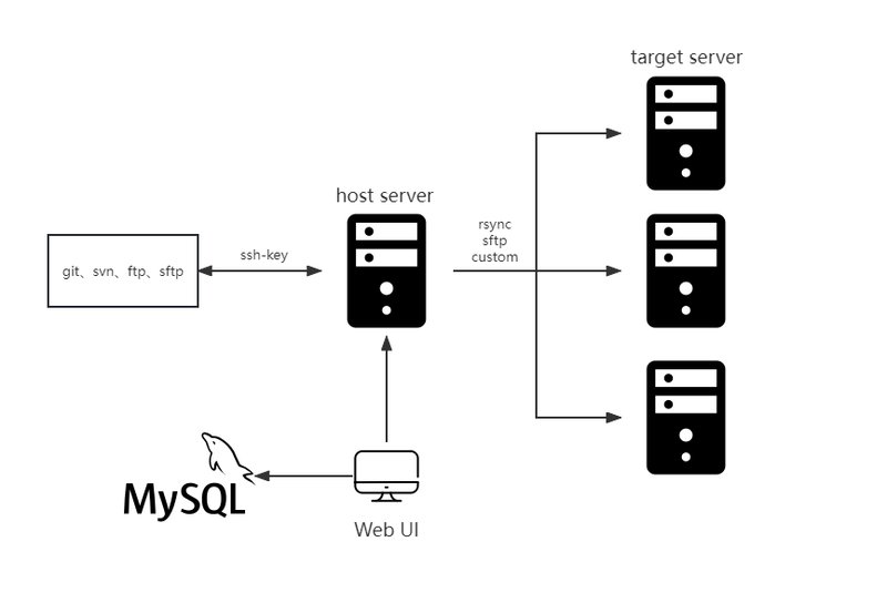 goploy支持git、svn、ftp、sftp等多种代码发布方式,支持各种web代码发布,如PHP,Python,JAVA等代码的发布、回滚。
