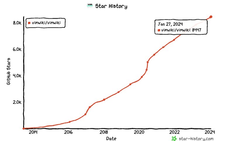 VimWiki 是一个 Vim 插件,它可以让你在 Vim 中创建和管理一组链接起来的、有独特语法高亮的文本文件,也就是个人 Wiki。