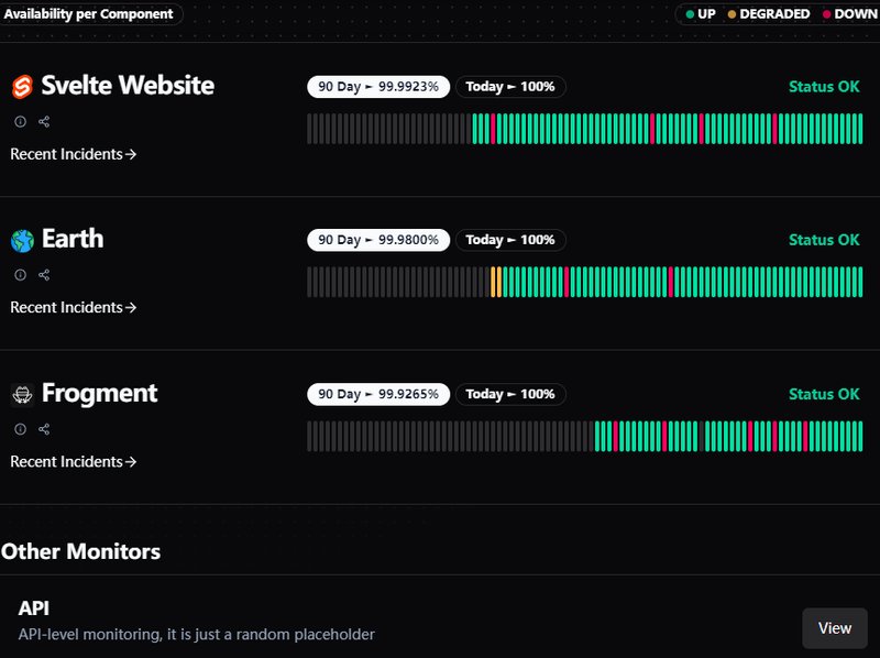定制和品牌:使用 yaml 或代码定制状态页面,为监控器的状态和正常运行时间生成徽章,支持自定义域名,将监控器嵌入为 iframe 或小部件,提供浅色和深色主题。