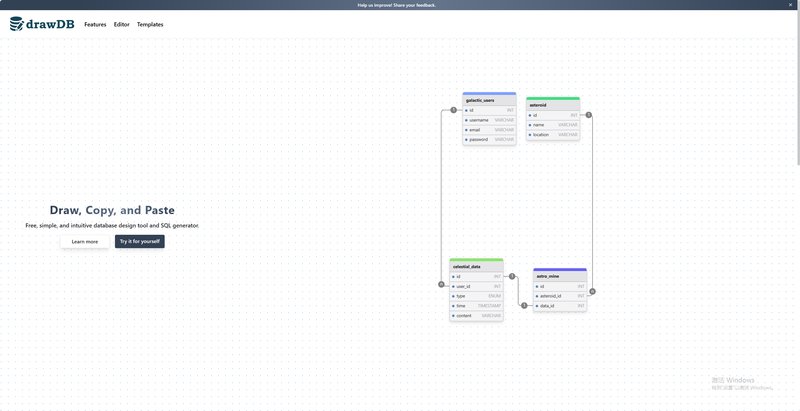 - 教学: 在教学中,drawDB 可以帮助学生学习数据库设计的基本概念和技能。