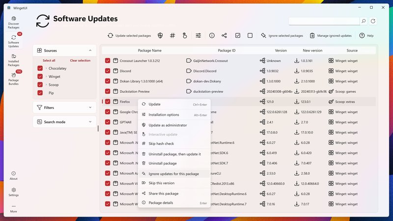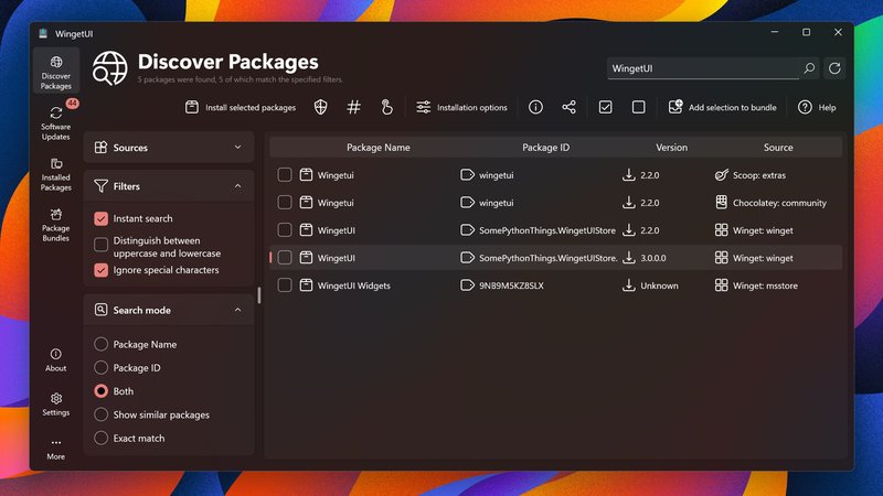 图形界面的包管理器,除了支持winget包,还支持Scoop、Chocolatey、Pip、NPM、.NET 工具和 PowerShell 库