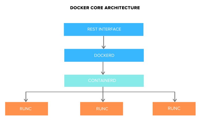 Docker 最初推出时,它具有整体架构。现在它被分为以下三个不同的组成部分。