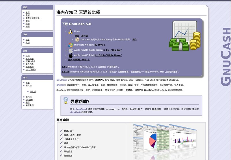 GnuCash 个人和小规模企业财务软件,遵循GNU GPL 协议,支持 Linux、BSD、Solaris、Mac OS X 和 Microsoft Windows。