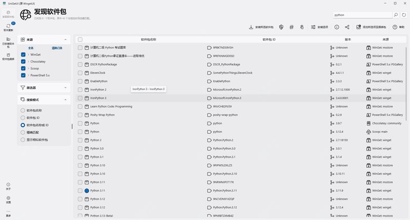 - 快速安装软件,一键安装或者卸载软件,集合了目前windows中最常用的包管理器