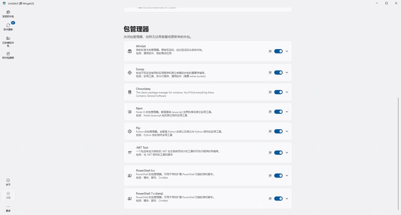 包括: WinGet, Scoop, Chocolatey, Pip, Npm, .NET Tool and PowerShell Gallery