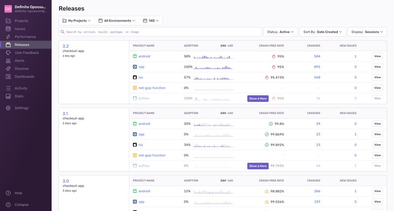 - 获取所有上下文。Sentry 会告诉你环境、设备、操作系统,甚至是导致错误的提交 - 直到代码的虚行。
