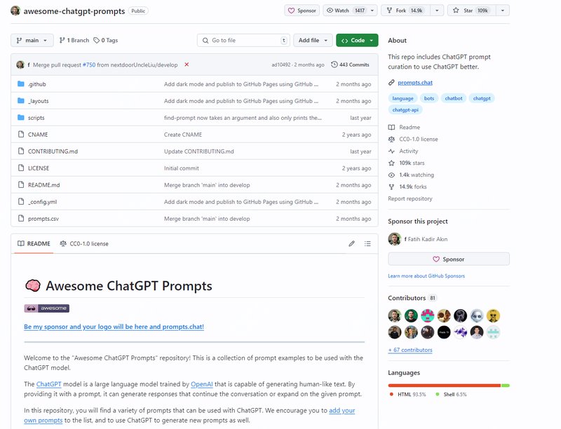 Awesome ChatGPT Prompts 是一个由社区驱动的 GitHub 仓库,旨在收集和分享各种有效的 ChatGPT 提示。