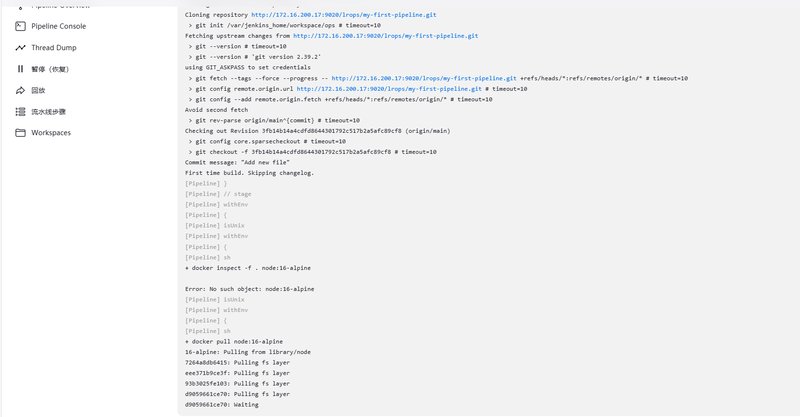 然后去构建,查看日志,可以看到已经在拉镜像了,这里只是一个简单的示例,实际使用过程中可能需要更多命令。