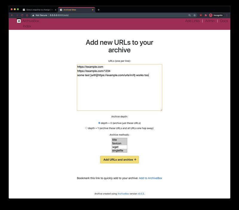 用户可以通过多种方式将网页链接导入到 ArchiveBox 中进行存档,包括: