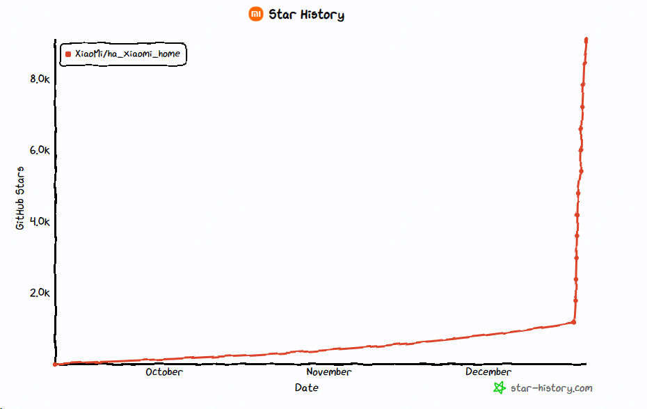 今天小米开源的一个项目登上了热榜第一,一天之内star上涨数千,从2k到目前的9k,ha_xiaomi_home
