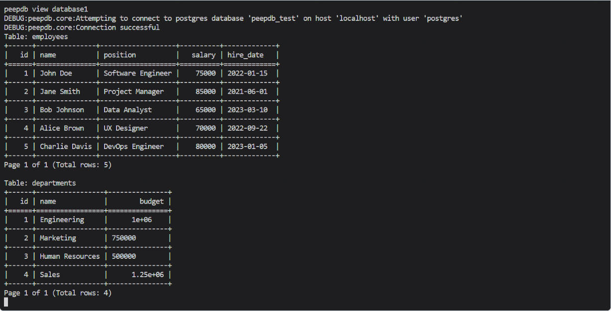 peepdb view <connection_name> --table <table_name> --page <page_number> --page-size <rows_per_page> -