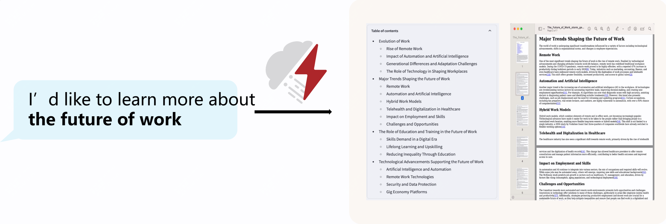 STORM(Synthesis of Topic Outlines through Retrieval and Multi-perspective Question Asking) 是一个基于大语言模型(LLM)的知识整理系统。它能够从互联网搜索中收集信息,并生成类似维基百科的完整文章,附带引用。其衍生版本 Co-STORM 更进一步,支持人与AI的协同知识整理,为用户提供更贴合需求的信息探索体验。