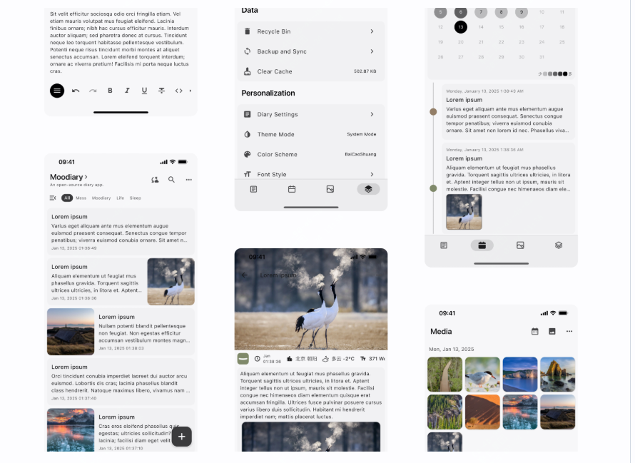 Moodiary 是一款专注于个人记录的开源日记应用,它支持多个平台,包括 Android、iOS、Windows、macOS 和 Linux*。它结合了现代设计和强大技术栈,提供直观的用户体验,同时确保数据的安全性和隐私性。