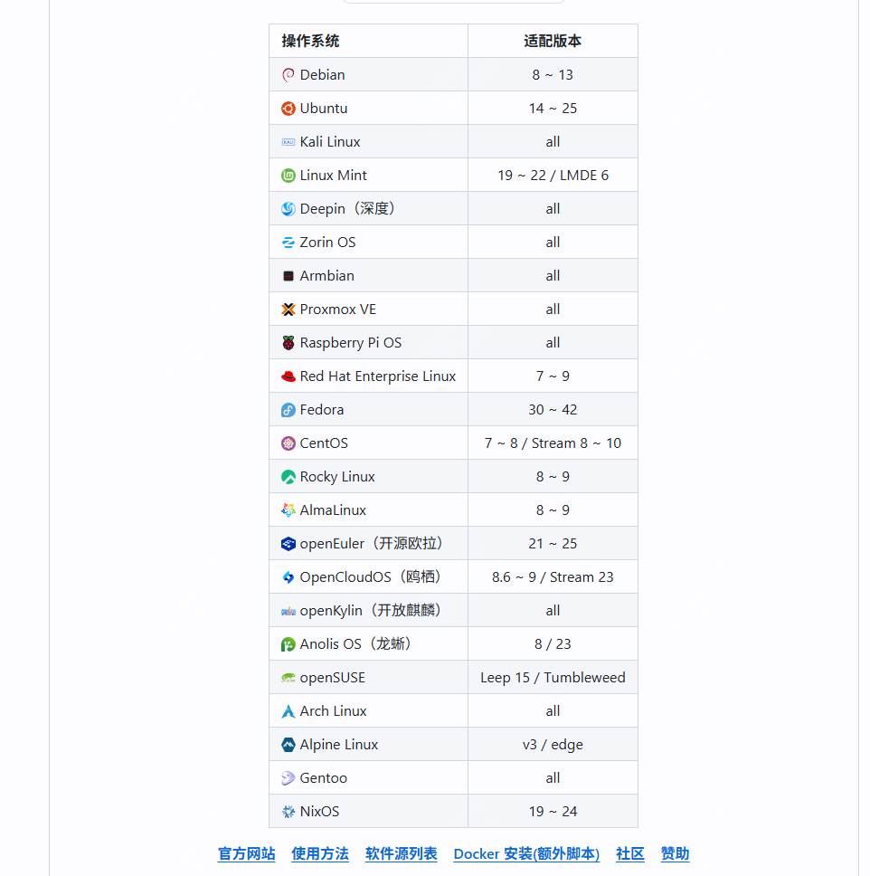 - 支持Docker安装与换源:提供专门的Docker安装及换源脚本,方便容器环境用户快速配置镜像源,提高容器内软件的获取速度。