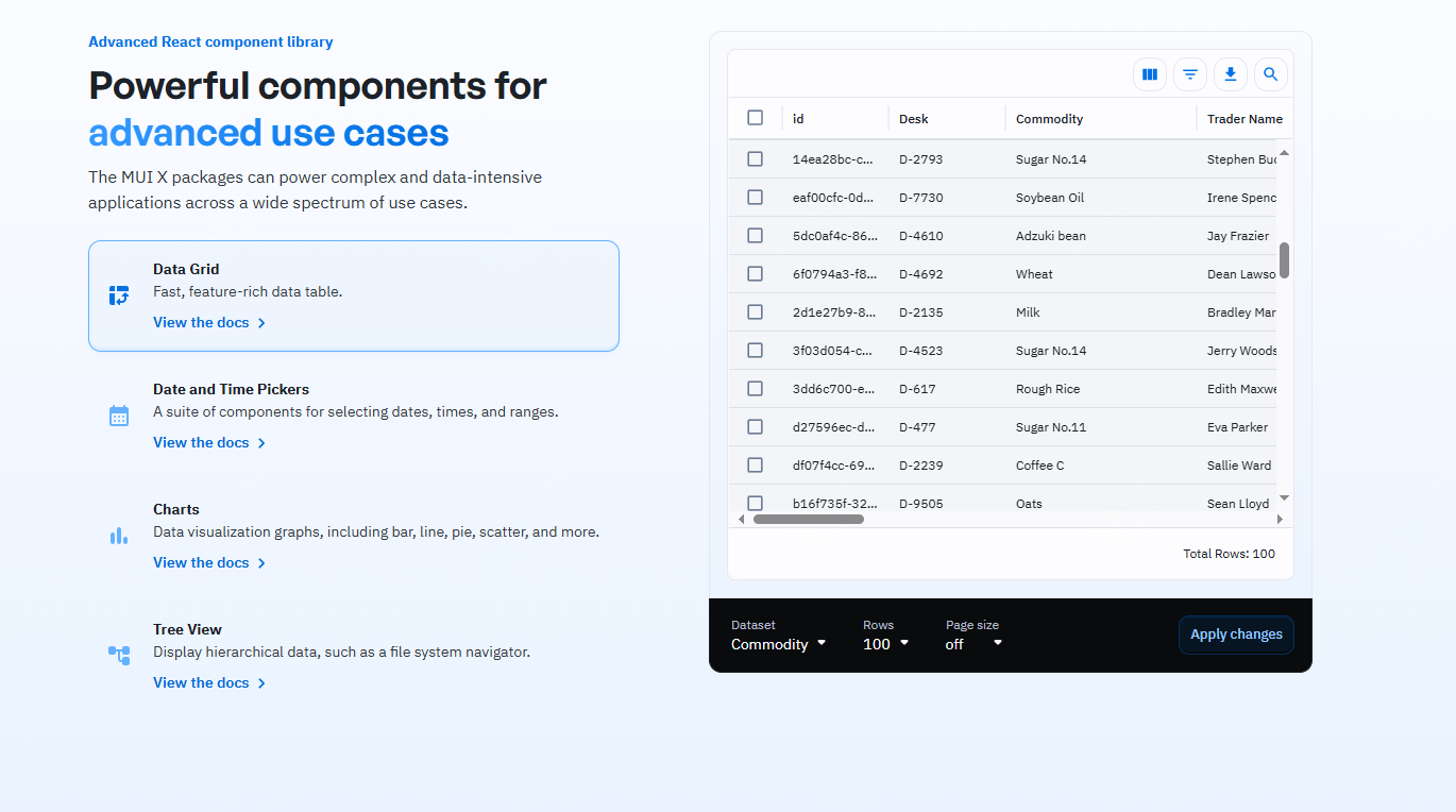 针对这些问题,MUI X 提供了一套先进的 React UI 组件,帮助开发者轻松构建复杂的应用。