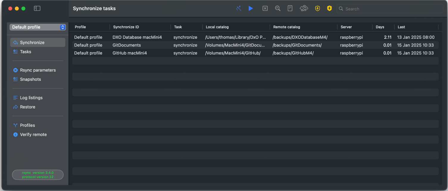 RsyncUI 让 macOS 用户能够更加便捷地使用 rsync 进行文件同步和备份,省去繁琐的命令行操作,提升工作效率。如果你正在寻找一种高效、安全的同步方案,它会是一个不错的选择!立即尝试,让数据管理变得更简单、更智能!